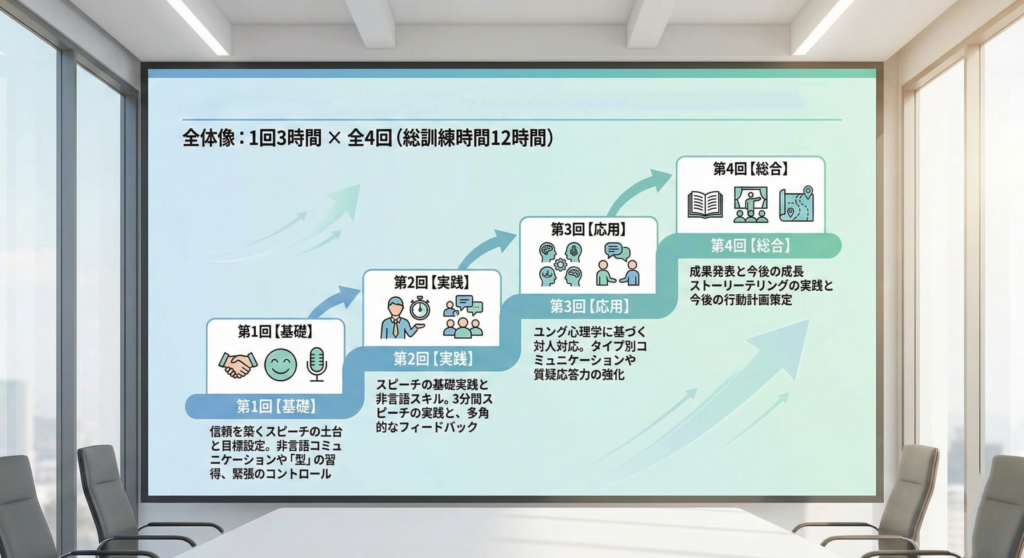 全体像:1回3時間 × 全4回(総訓練12時間)
